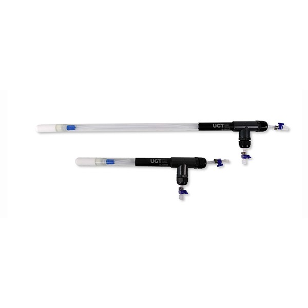 在一定的負壓下,土壤中可自由移動的水分透過陶瓷頭(P80:20 x 50 mm)進入到丙烯酸玻璃的標準管(? 20 mm)中,標準管直接收集溶液,也可選配額外的采樣容器來收集。